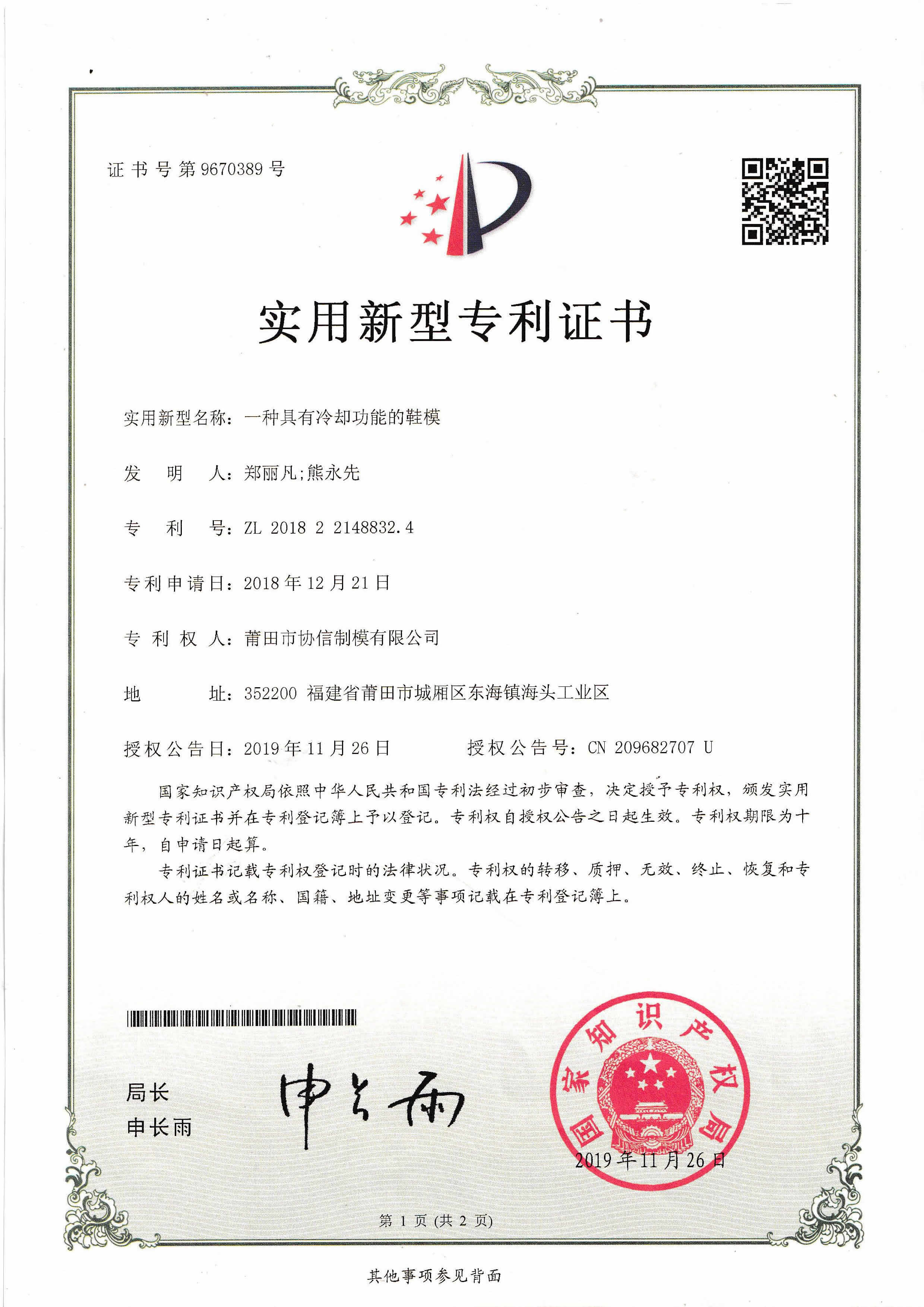 協(xié)信公司全景圖      莆田市協(xié)信制模有限公司成立于2003年9月10日,由香港協(xié)信香港協(xié)信國際貿(mào)易有限公司投資組建,注冊資金120萬美元,是一家專業(yè)從事業(yè)鞋類模具設(shè)計(jì)、制造與銷售企業(yè),在行業(yè)內(nèi)享有盛譽(yù)。主要產(chǎn)品:RB、EVA、PVC、TPU、TR、TPR、ETPU、射出EVA等。公司月產(chǎn)能模具900多套,所有產(chǎn)品均采用國際質(zhì)量標(biāo)準(zhǔn),各個(gè)生產(chǎn)環(huán)節(jié)貫徹完善品質(zhì)檢查體系。